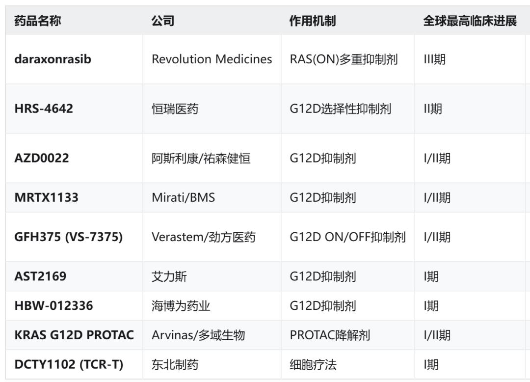 The fastest development pipeline of KRAS G12D inhibitors in the world is the pan-KRAS inhibitor of Revolution Medicines, while the fastest single-target KRAS G12D inhibitor is HRS-4642 of Hengrui. The other pipelines are in phase I/II or I, and it is not clear who will win in the future.