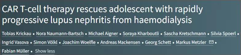 Tobias Krickau et al. CAR T-cell therapy rescues adolescent with rapidly progressive lupus nephritis from haemodialysis. Lancet, 2024, doi:10.1016/S0140-6736(24)00424-0.