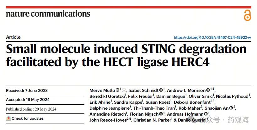 近日,诺华生物医学研究所的科学家们在《自然-通讯》杂志上发表了一篇重要研究论文,报道了一种名为AK59的新型小分子化合物,能够有效降解STING蛋白,从而抑制其活性。这项研究为治疗STING相关自身免疫性疾病开辟了新的治疗途径。