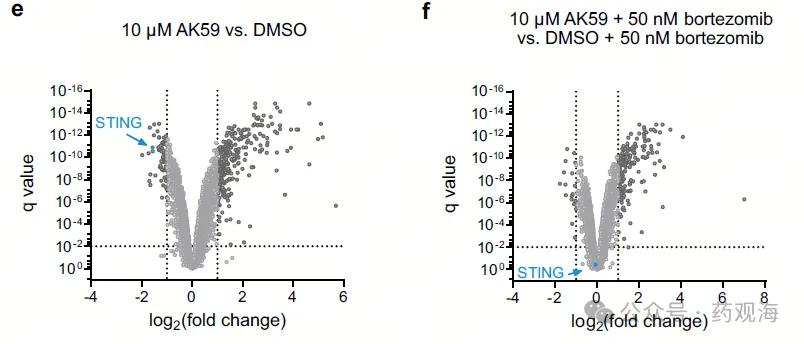 蛋白组学分析结果显示,AK59能够导致STING蛋白水平的显著下调,且该下调过程依赖于蛋白酶体(图1e, 1f)。