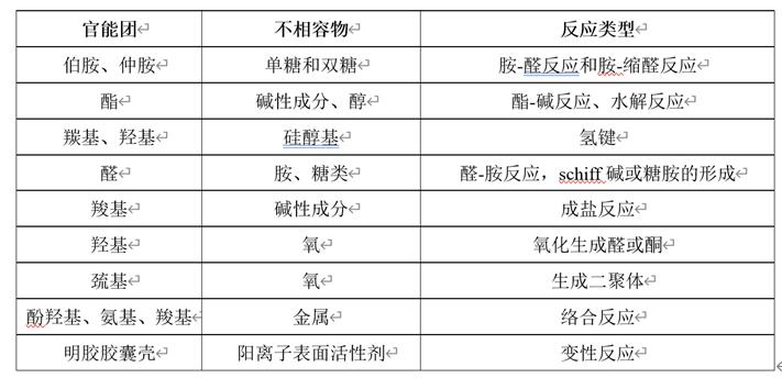 表1.原辅料潜在的不相容官能团[1]