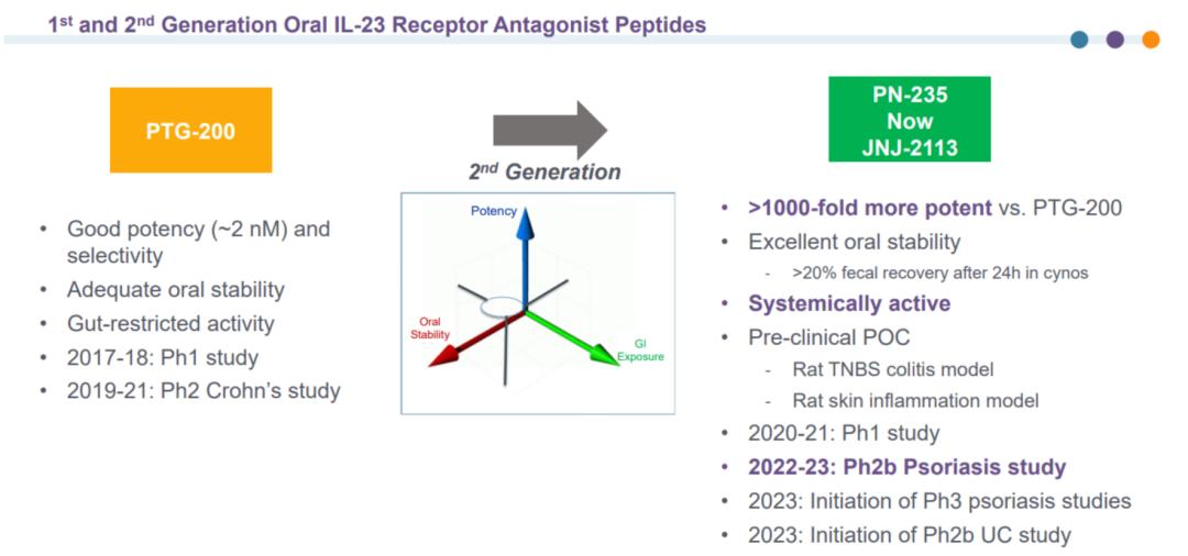 JNJ-2113的前身是PTG-200。最初,强生与Protagonist在2017年达成9.9亿美元的合作协议时,目标并非系统性给药,而是开发一种肠道限制性疗法。
