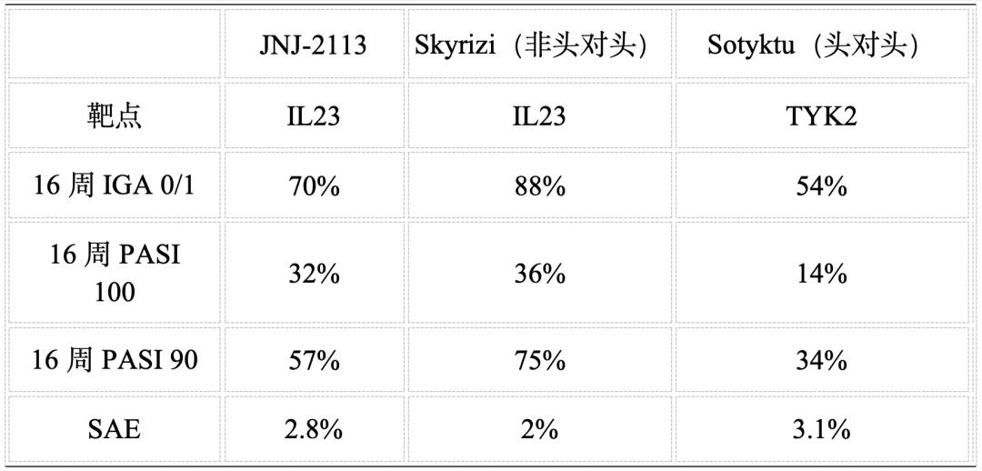 在自免疾病这个内卷的市场,JNJ-2113 面临着前有狼(抗体),后有虎(口服标准治疗Sotyktu)的夹击局面。Skyrizi(IL23抗体)和Stelara(IL12抗体)疗效好,但需要注射,Sotyktu口服给药但安全性和有效性明显不如抗体类分子。而JNJ-2113在设计之初,就是希望能将二者的优势糅合,真正实现口服级别的抗体疗效。