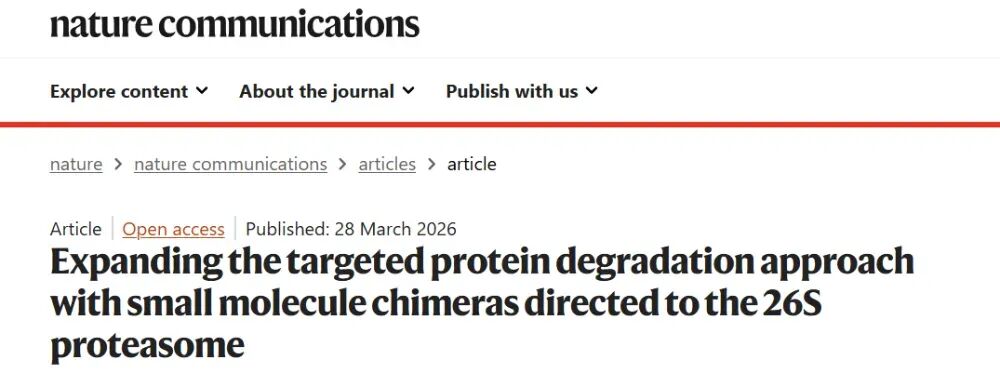 近日,西班牙研究团队在《Nature Communications》发表重磅研究“Expanding the targeted protein degradation approach with small molecule chimeras directed to the 26S proteasome”,成功开发26S靶向泛素非依赖降解剂(26S-UIDs),绕过 E3 连接酶,直接将靶蛋白递送至 26S 蛋白酶体降解,为靶向蛋白降解领域开辟全新赛道。