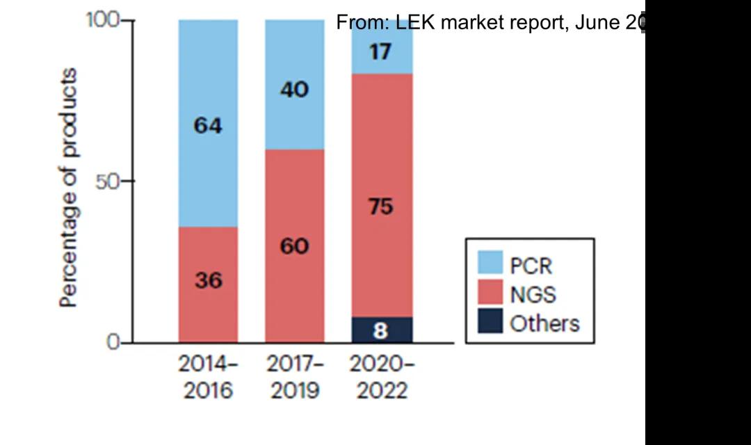 硬件和软件方面的进步使各种规模的实验室都能以更快的速度和更低的价格进行测序,以推动NGS市场的扩大及其在新环境中的应用。适用于低样本量的测序仪的价格与高样本量用户的价格相当,减少测序的集中化程度,提高样本和所产生数据的民主化程度和控制能力。