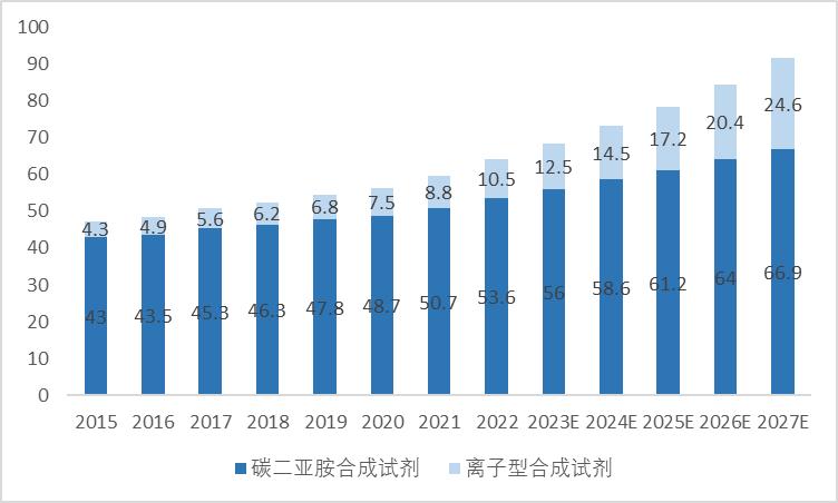 图3.近年来全球多肽缩合试剂市场规模预测(单位:亿元)
