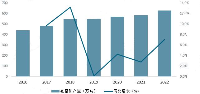 氨基酸为多肽药物重要上游原材料,其产量影响中国多肽药物行业的发展,2022年中国氨基酸产量达628.26万吨,同比增长7.1%,中国氨基酸持续增产,为多肽药物行业提供了充足的原材料,原材料本身的质量将影响多肽药物的质量,原材料价格的波动也直接影响行业的生产成本,未来,随着中国多肽药物产业链的进一步发展,多肽药物原材料供应商数量还将逐步增加,原材料的选择范围将进一步扩大,有助于多肽药物行业长期稳定发展。