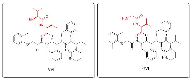 图4. 洛匹那韦 (LVR) 多肽前体药物VVL与GVL。