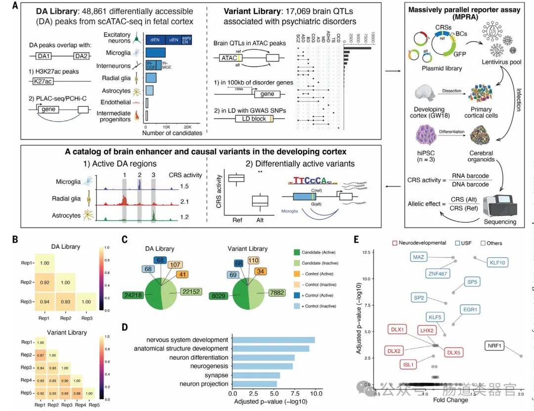 4.精神疾病相关遗传变异的功能表征:研究鉴定了与精神疾病相关的164个变体,并分析了它们在人类皮层细胞中的增强子活性差异,这有助于揭示这些变异如何影响大脑发育和疾病风险。